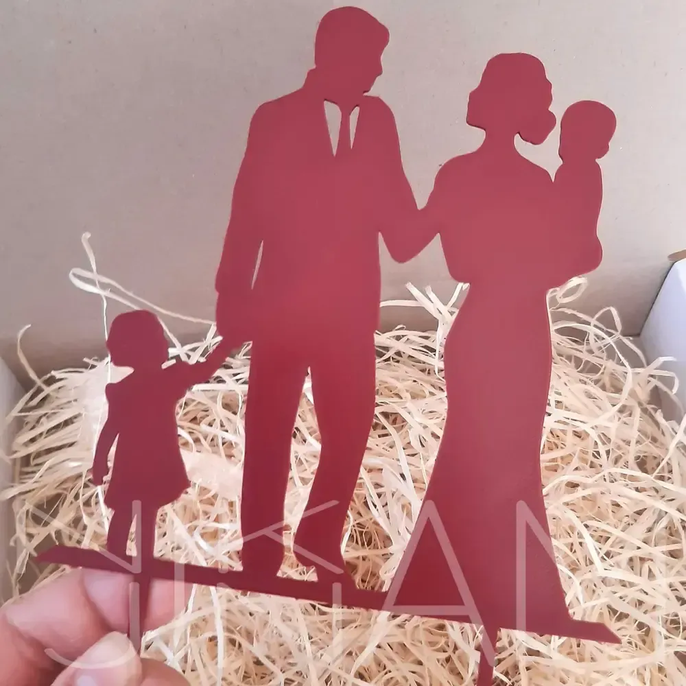 Dortový zápich svatební pár s jejich dětmi - dívkou a batoletem