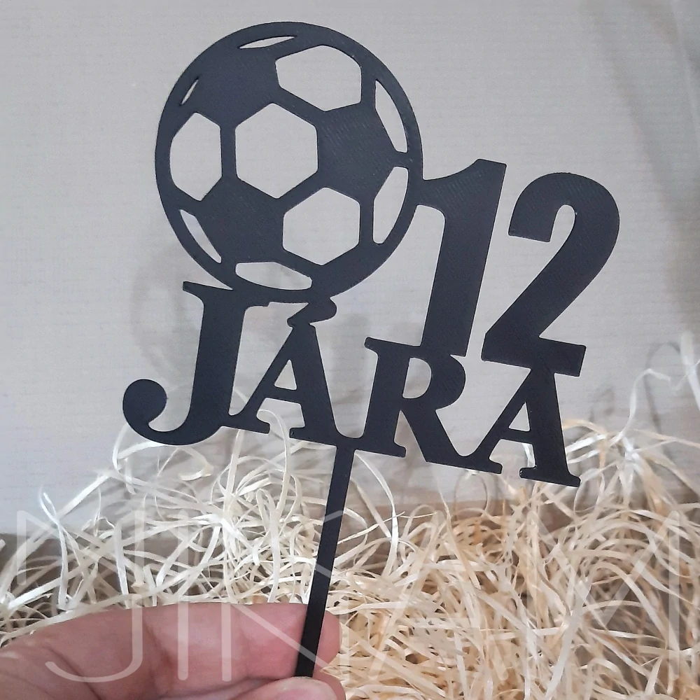 Personalizovaný narozeninový zápich. K míči můžeme napsat jméno a číslo. Font vždy volíme tak aby co nejlépe seděl ke zvolenému textu.
