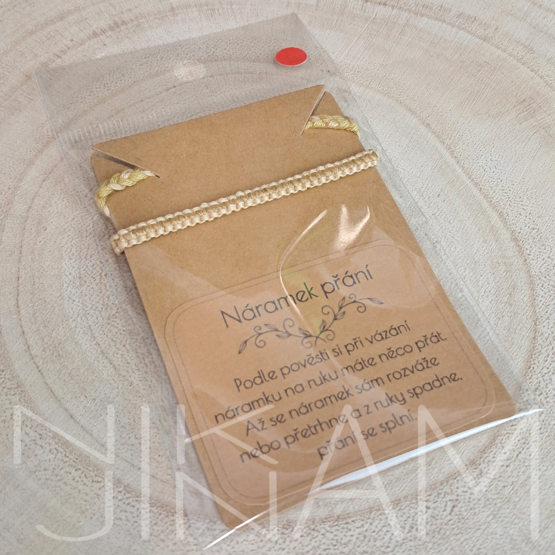 Náramek přání je skvělým drobným dárkem pro děti i dospělé. Podle pověsti si při vázání náramku na ruku máte něco přát. Až se náramek sám rozváže nebo přetrhne a z ruky spadne, přání se splní. V přípa... celý popis