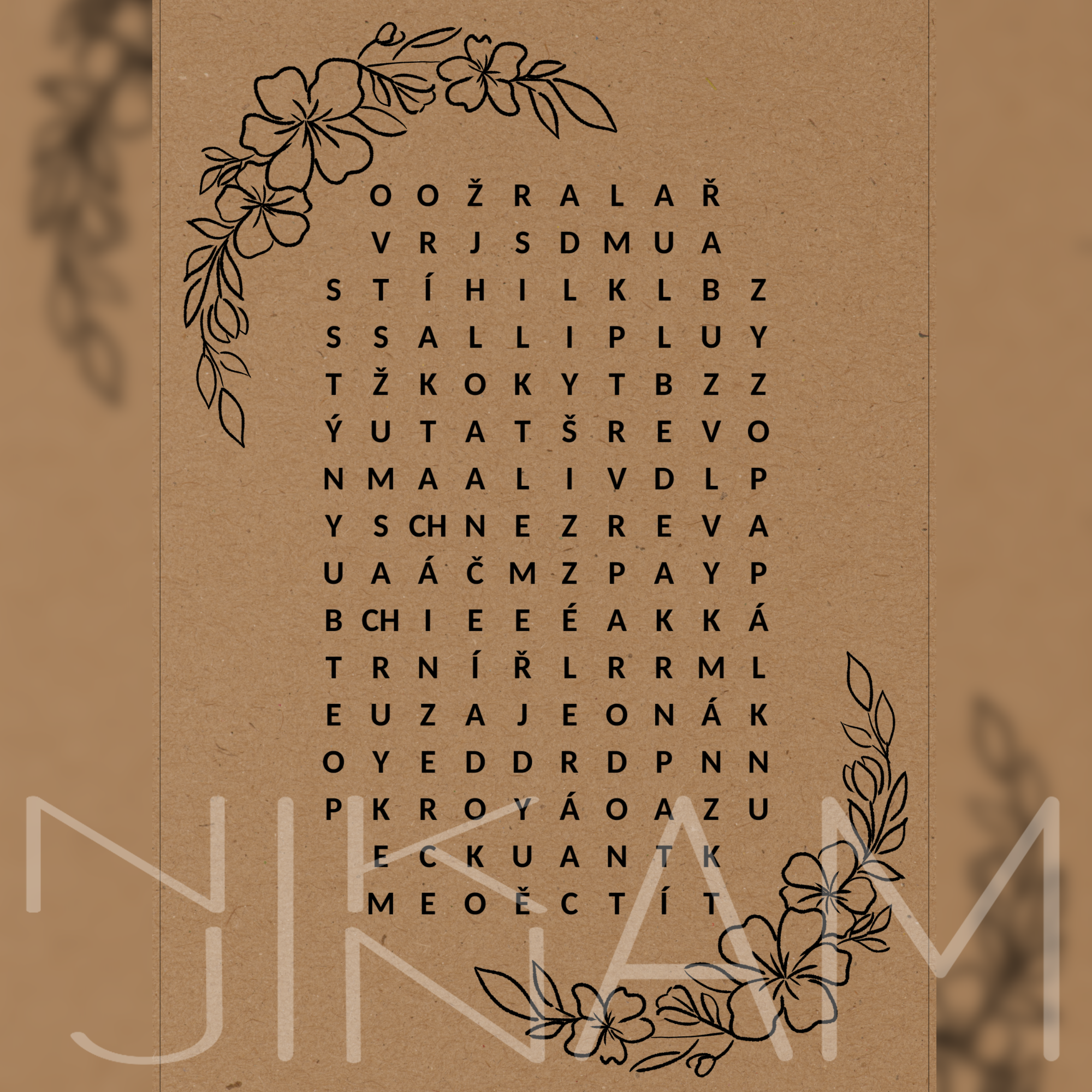 Není to úplně to co jste hledali? Objednejte si osmisměrku s tajenkou nebo ilustrací na přání nebo nás kontaktujte a něco spolu vymyslíme ;)