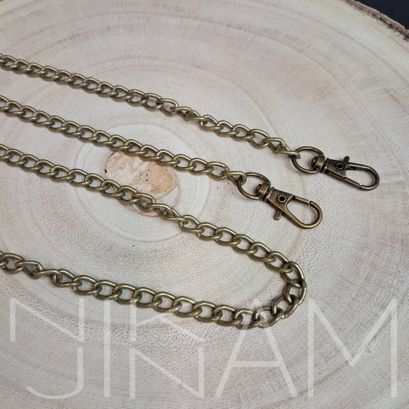 Kovový řetízek na kabelky, psaníčka nebo mobilní telefon. Na obou jeho koncích najdete připevněné karabinky. Není určen na velkou zátěž. Hmotnost 58 gramů.