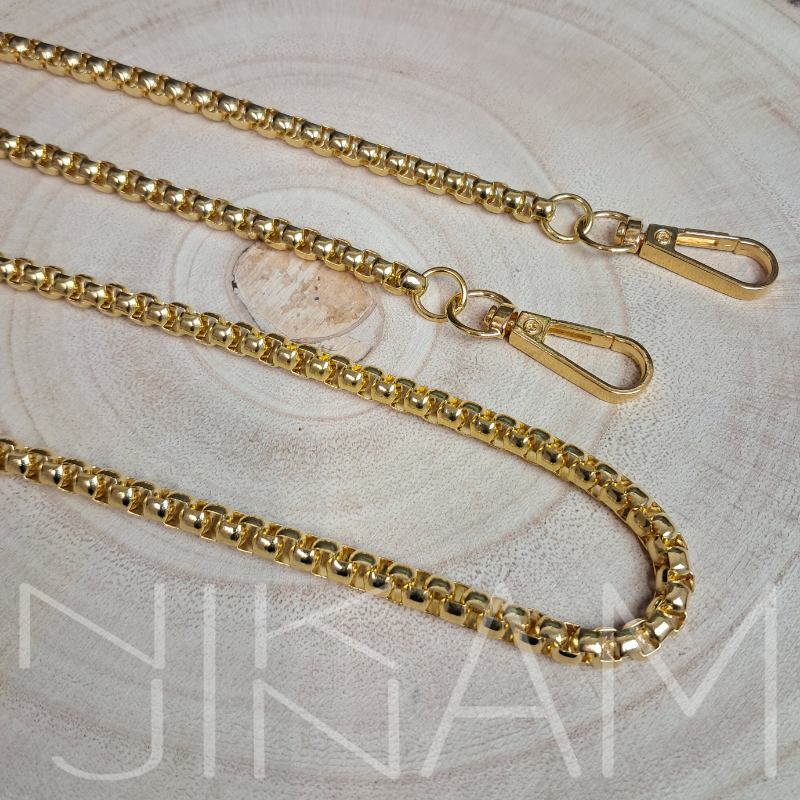 Kovový řetízek na kabelky, psaníčka nebo mobilní telefon. Na obou jeho koncích najdete připevněné karabinky. Není určen pro velkou zátěž. Hmotnost 119 gramů.