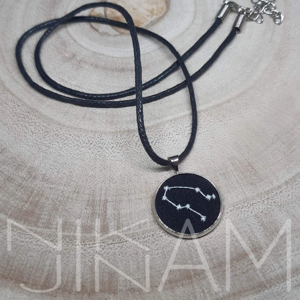 Náhrdelník s ručně vyšívaným souhvězdím blíženců, svítící ve tmě