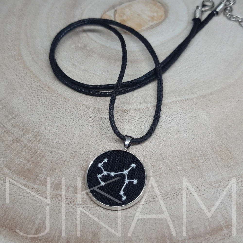 Náhrdelník s ručně vyšívaným souhvězdím střelce, svítící ve tmě